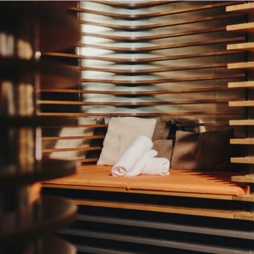 In der finnischen Sauna genießt du intensive Wärme bei hohen Temperaturen und niedriger Luftfeuchtigkeit. Die trockene Hitze hilft deinem Körper, tief zu entspannen, die Durchblutung zu fördern und Spannungen zu lösen. Der bewusste Wechsel zwischen Wärme und Abkühlung unterstützt die Regeneration, stärkt dein Körpergefühl und schafft einen klaren Moment der Ruhe.